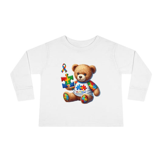 Autism Awareness Toddler Long Sleeve Tee - Cute Teddy Bear Design