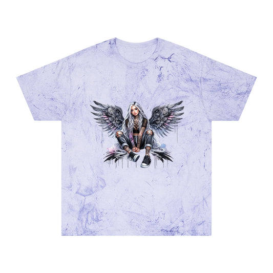 Edgy Unisex Color Blast T-Shirt with Winged Design | Casual Streetwear for Music Lovers